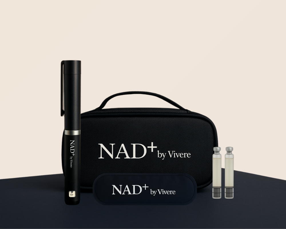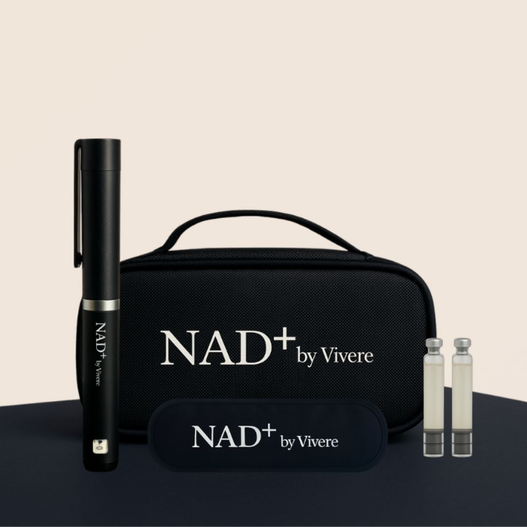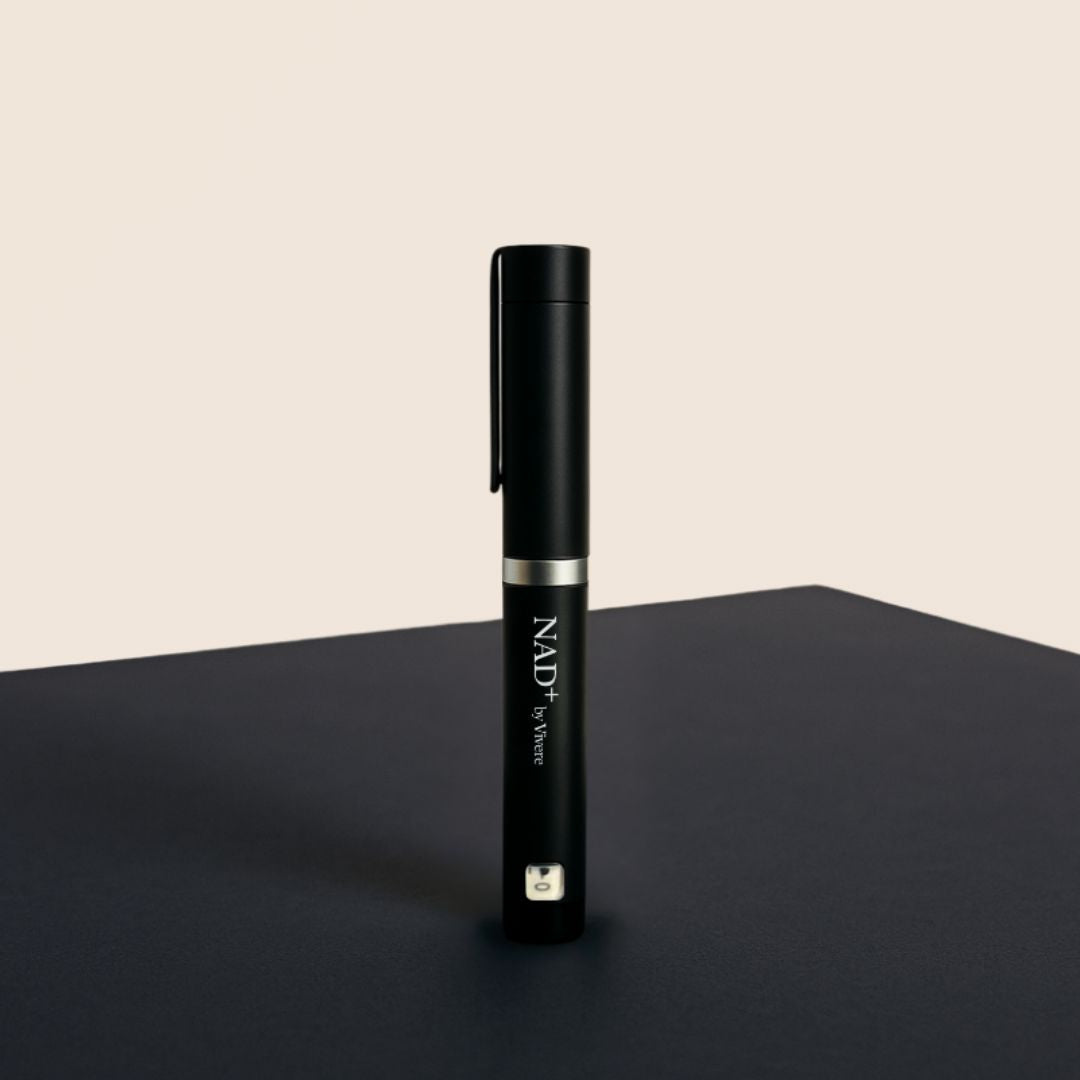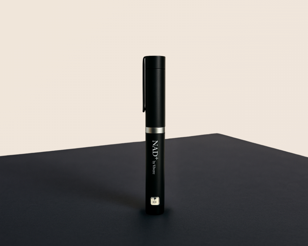 Injecting NAD+ directly into the body using Vivere’s NAD+ pen allows for rapid absorption and high bioavailability compared to oral supplements. This method bypasses digestion, making it an effective way to replenish and restore NAD+ levels to support cell repair, metabolic function and overall health.